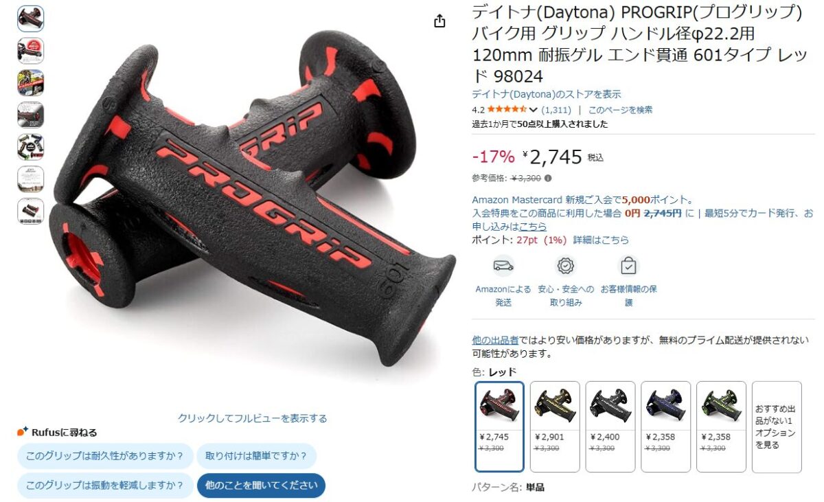 デイトナ(Daytona) PROGRIP(プログリップ) バイク用 グリップ ハンドル径φ22.2用