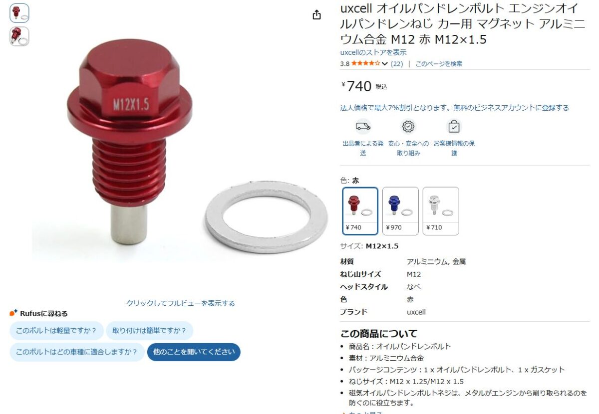 ◎オイル交換時に何度か交換したオイルドレンボルト