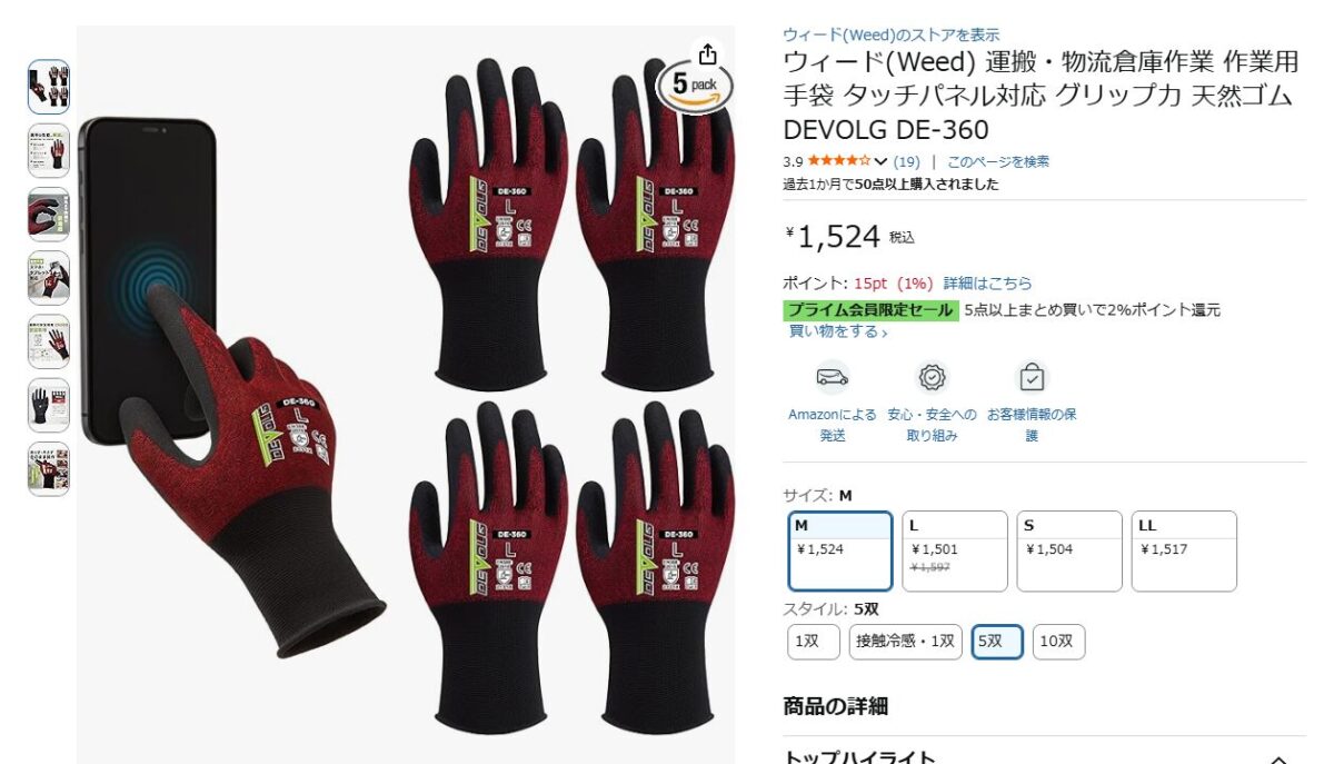 できる限り、こういった作業用グローブは装着した方がいいですね