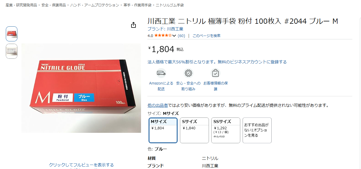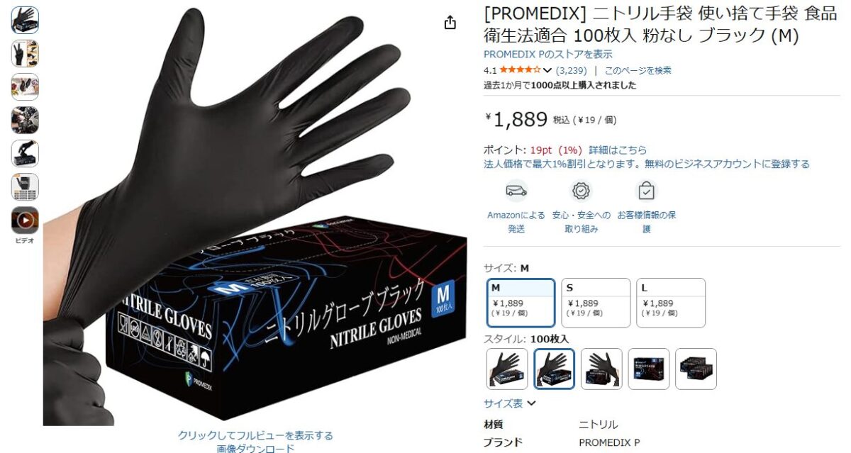 Sでも良さそうなんだけど装着時に破ける場合があるので、少し余裕のあるサイズにしてます。
